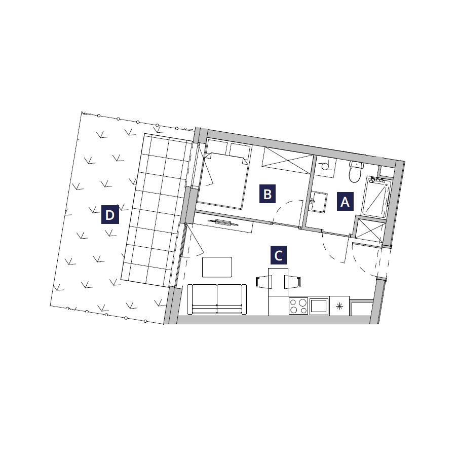 Do mieszkania przynależy także 20-metrowy, indywidualny ogródek mieszkalny, który będzie do wyłącznej dyspozycji lokatorów. Do dodatkowa przestrzeń, którą można zagospodarować i wyposażyć w zestaw wypoczynkowy i cieszyć się relaksem we własnym ogródku.